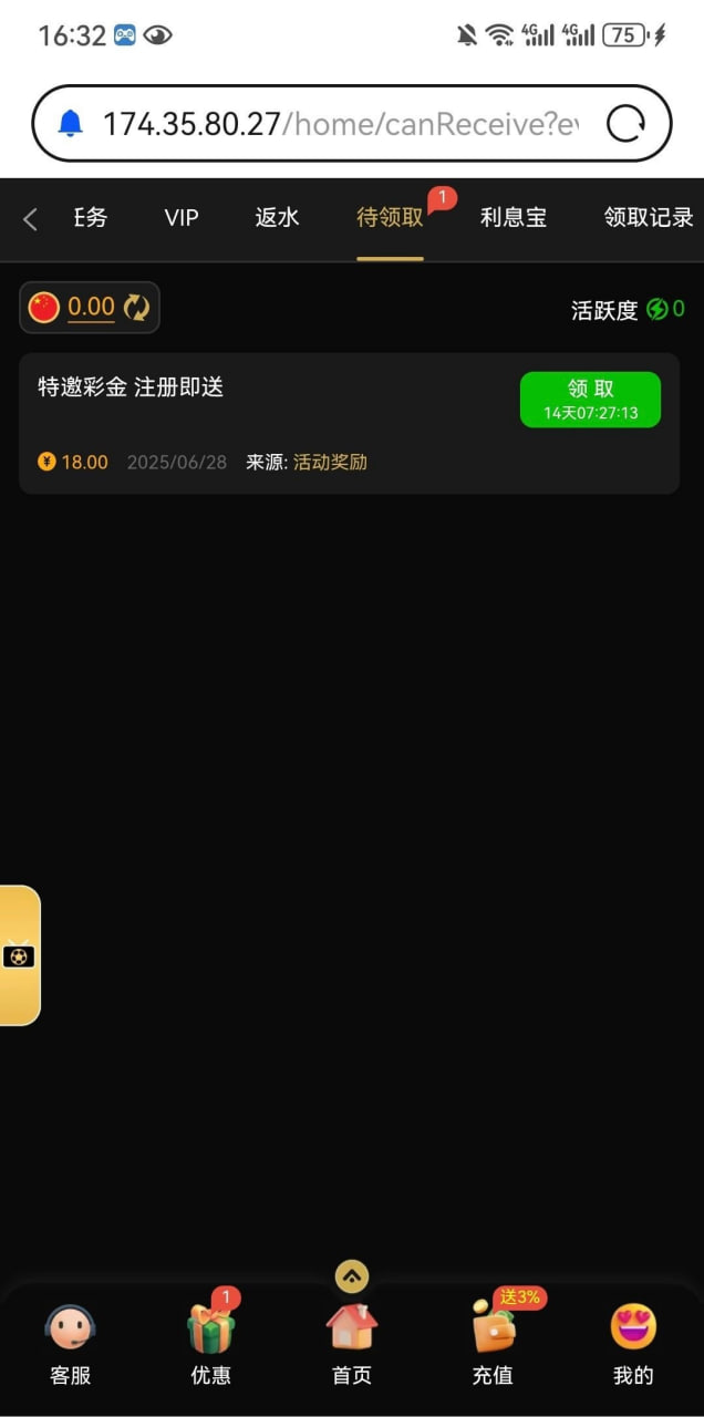 刚接到电话送了18,账号不知道什么时候注册的,没有充值过,没有号可以先注册等电话 网址4566.com
