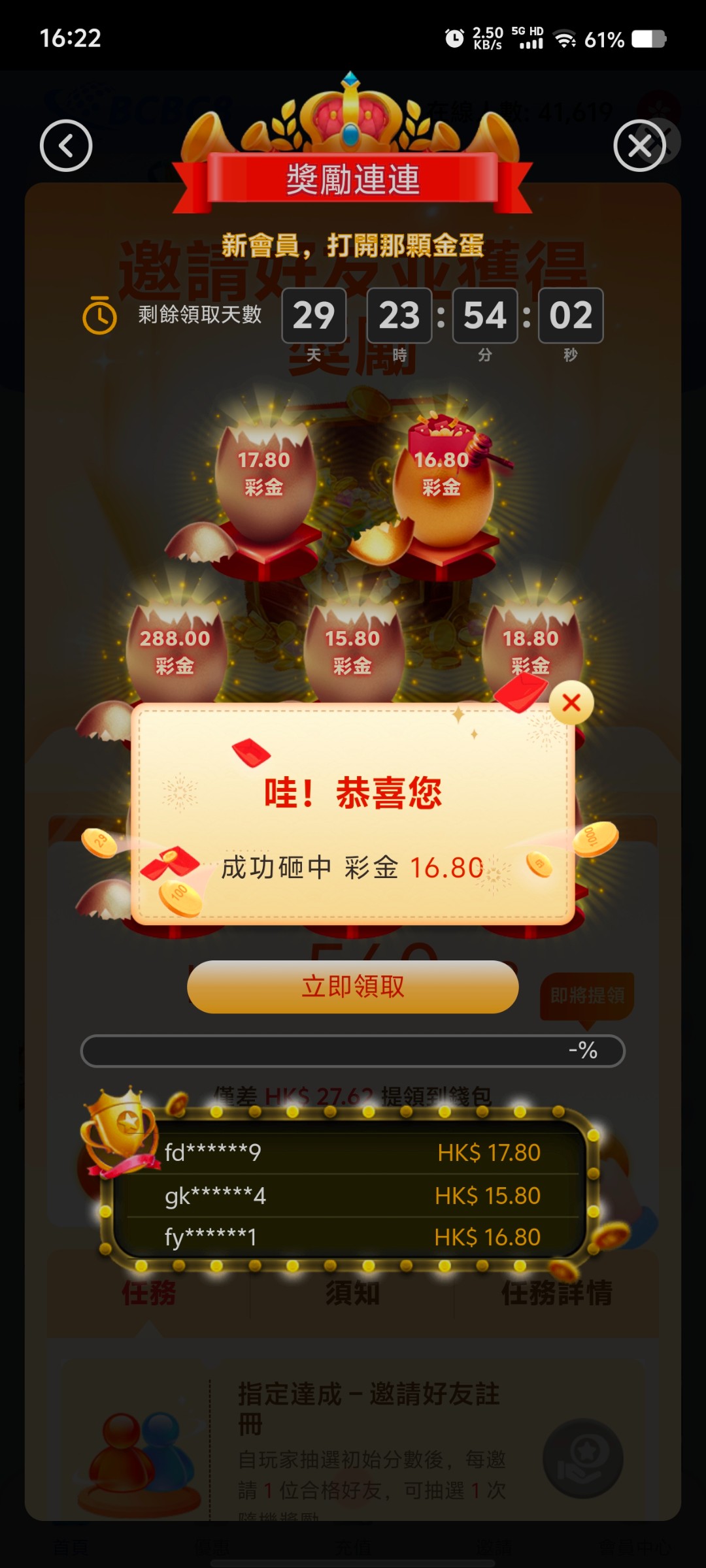 香港台子 新人注册绑定银行卡 砸金蛋 绑定银行卡目前看到有中国银行和中国建设银行 如果在有香港银行卡那就方便多了