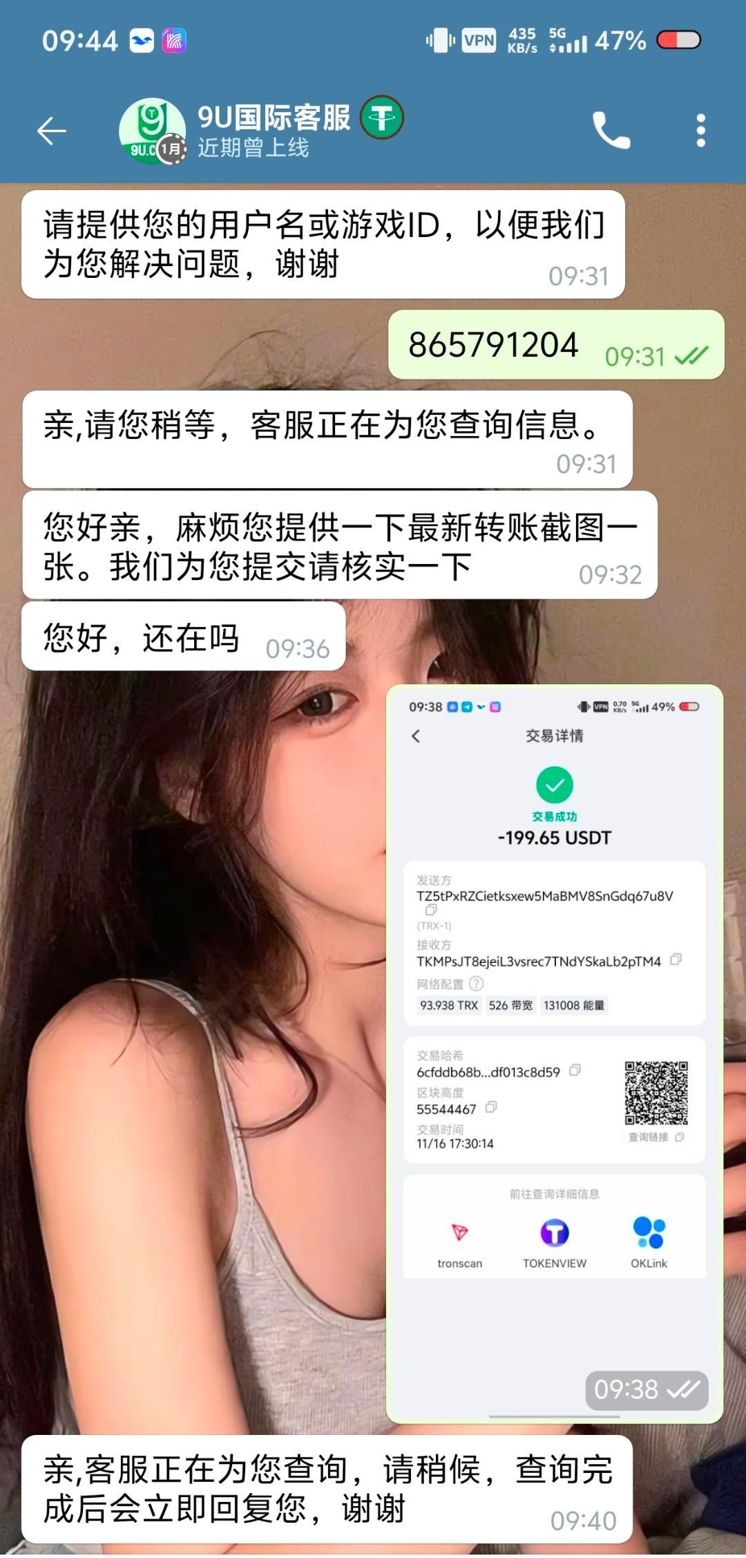 官方网址9u.com绑定有流水的地址直接找客服审核提供最新转账截图
