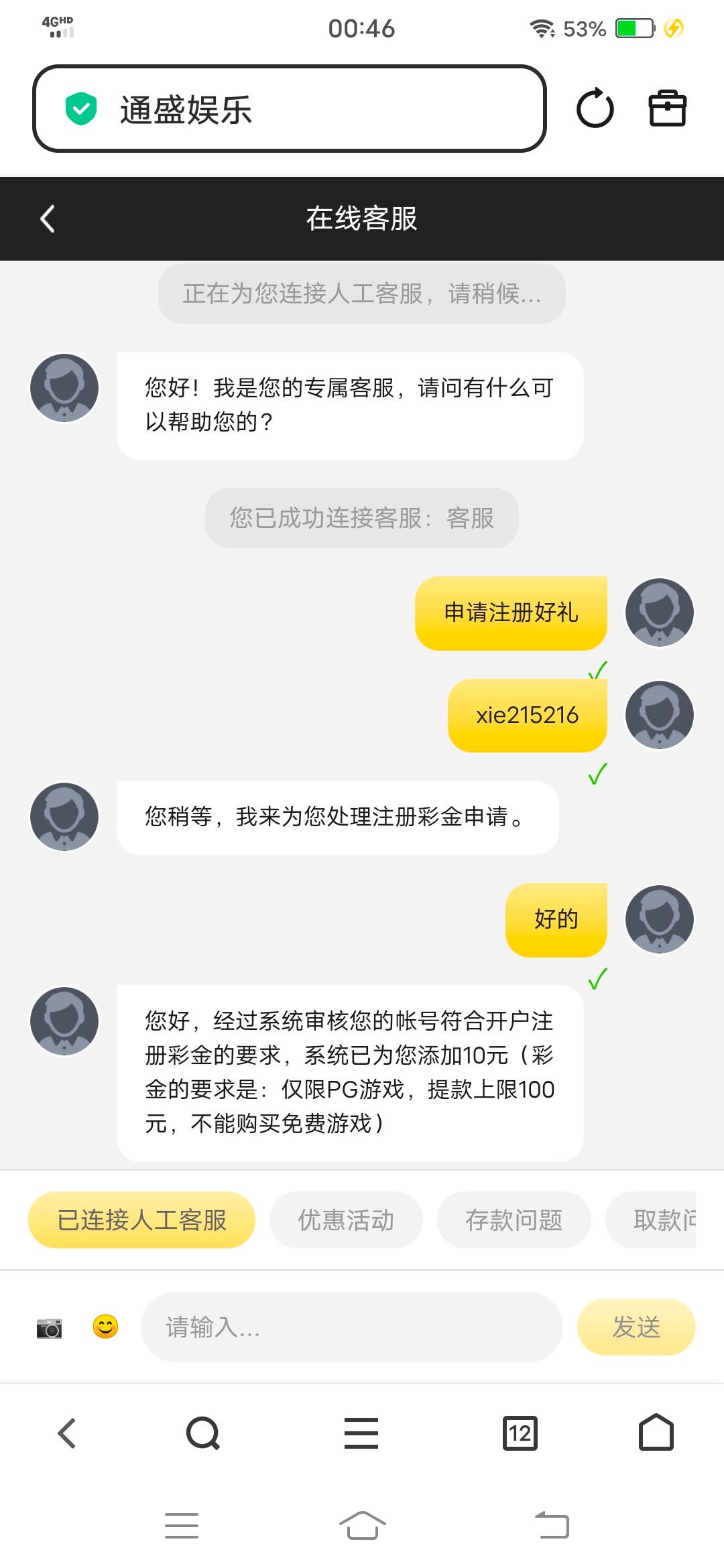 注册送10彩金,已经送了,可以去试试tys588.vip