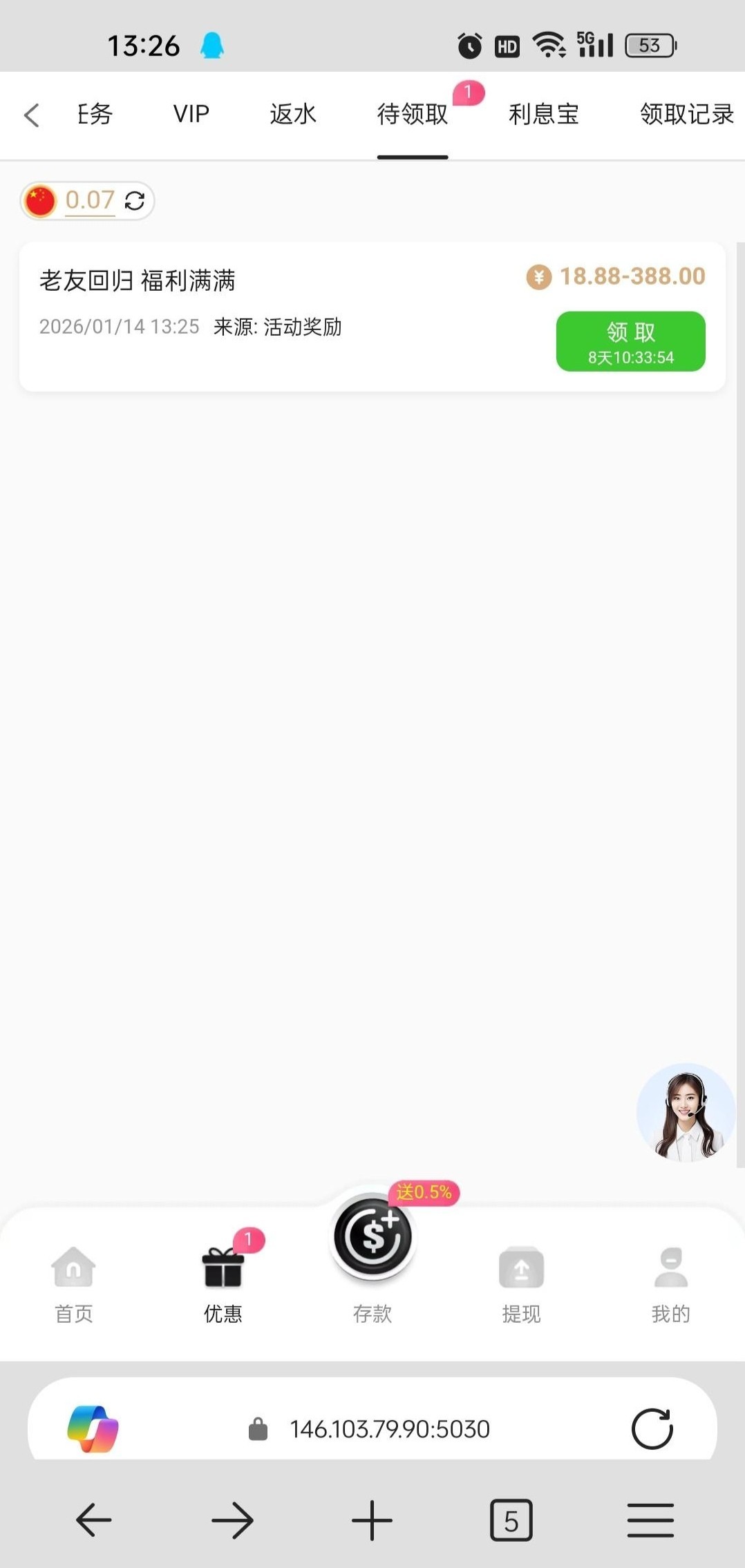 历史充值过的去近期没充值要充值一次才能领取