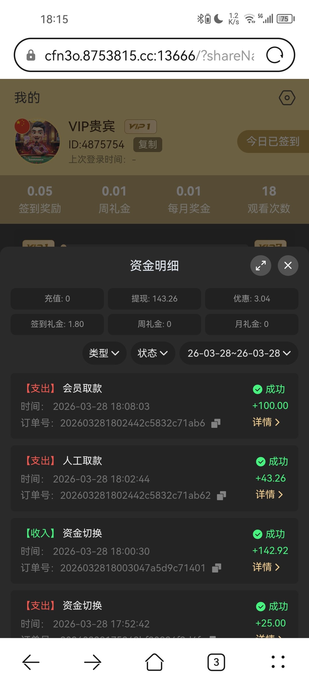 取款一百块 28打不起来  签到3块打起来了