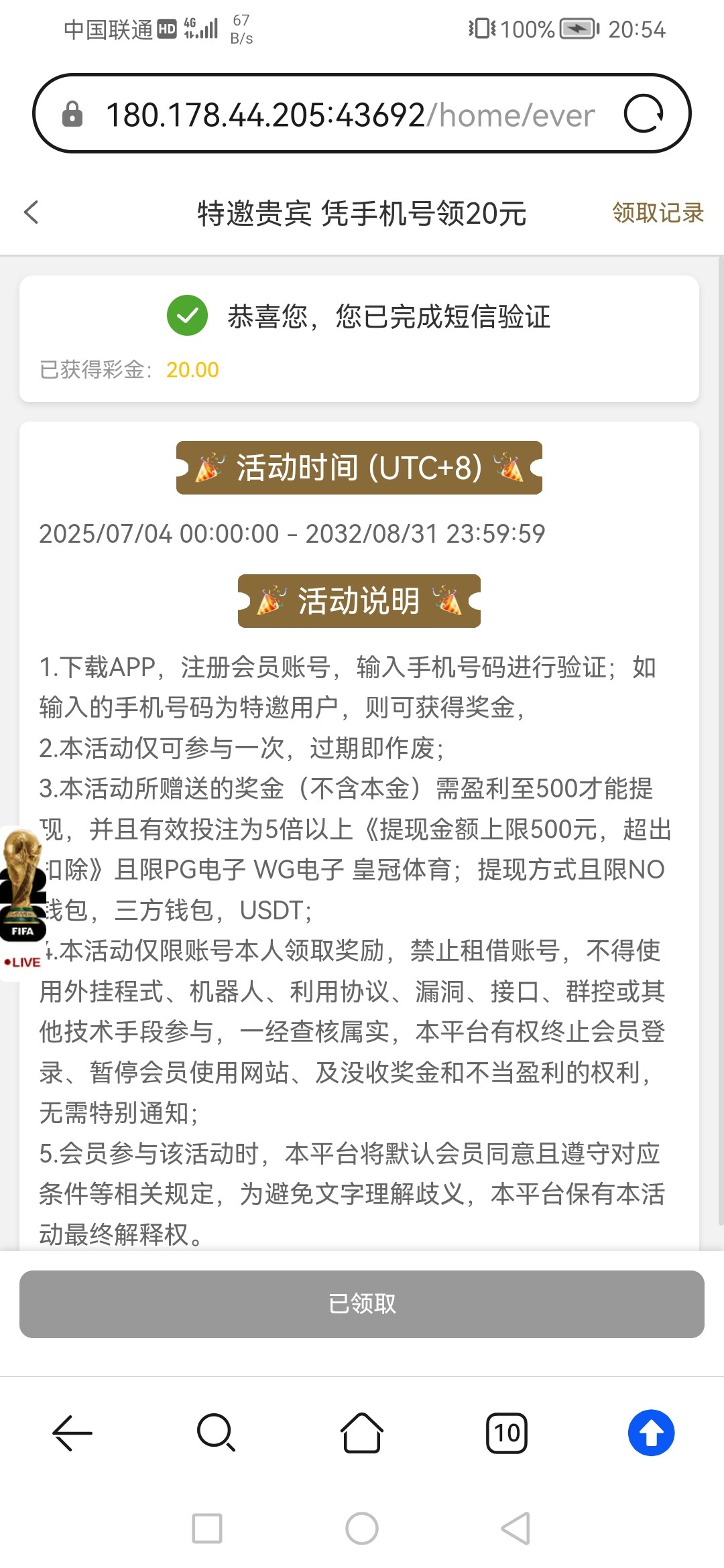 优惠→新人→查特邀送20 下滑到底