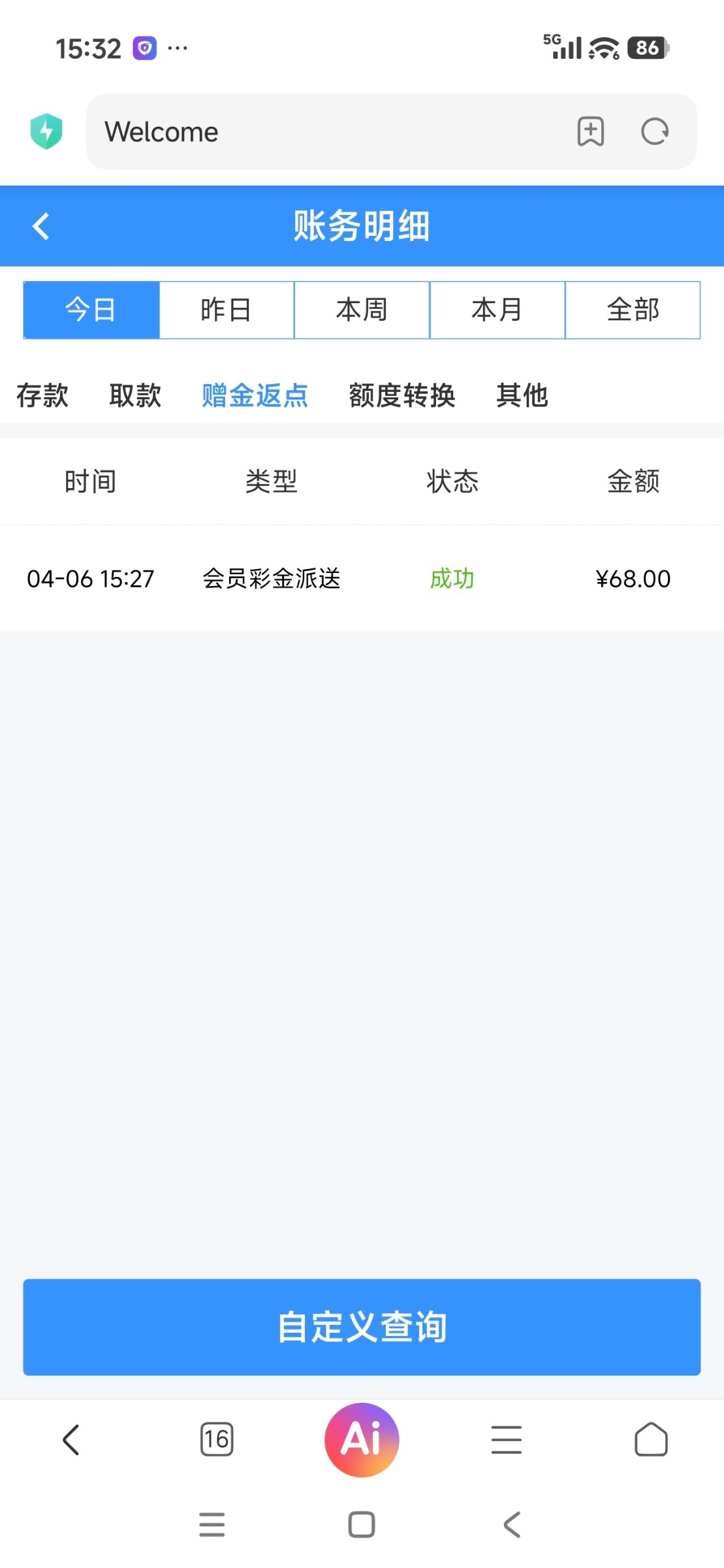 小蓝台威尼斯人上线登录就有68,有账号的去看看