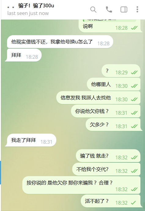 不然一切免谈!他妈的 几百u骗了能发家致富吗?