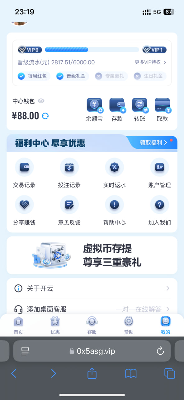 历史用户登录账号,看看有不有彩金。我是送了88,没有就无视。 kaiyun.com